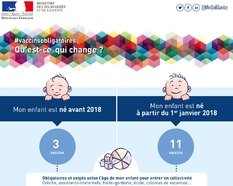 - Enfants nés à partir du 1er janvier 2018 : ils devront être vaccinés contre 11 maladies (au lieu de 3 auparavant) : diphtérie, tétanos, poliomyélite, mais aussi coqueluche, rougeole, oreillons, rubéole, hépatite B, infections à Haemophilus influenzae de type b, à méningocoque C et à pneumocoque. Ces 11 vaccinations obligatoires seront exigées pour entrer en collectivité et vérifiées à compter du 1er juin 2018.