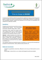 Ce nouvel outil, élaboré en collaboration avec deux experts ORL, rappelle les modalités de prise en charge du rhume préconisées en première intention : les mesures hygiéno-diététiques pour limiter les symptômes, les gestes barrières à adopter pour prévenir la contamination de l’entourage et l’administration de paracétamol en cas de fièvre, de céphalées ou de maux de gorge.