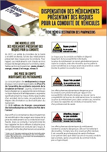 Dispensation des médicaments présentant des risques pour la conduite des véhicules - fiche mémo