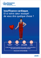 Depuis le 25 septembre 2022, l’Assurance Maladie diffuse une campagne nationale de sensibilisation sur l’insuffisance cardiaque et ses signes d’alerte. Cette campagne vise à mieux faire connaitre les signes de l’insuffisance cardiaque et inciter les patients à dialoguer avec les professionnels de santé, pour un dépistage précoce et une prise en charge optimale.