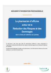 A cet effet, l’Ordre national des pharmaciens et le Cespharm ont engagé un travail en lien avec les représentants de la Profession (syndicats, étudiants), la MILDECA et des associations d'usagers (ASUD, AIDES) pour concevoir et élaborer un document d’information professionnelle à l’intention des pharmaciens d’officine sur la RdRD dans le champ de l’addiction aux opioïdes.