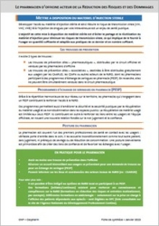 Ce document a pour ambition d'aider les pharmaciens à mieux comprendre et s'approprier la démarche de RdRD, au moyen de témoignages d'usagers et de pharmaciens, d'informations de référence, de contacts utiles et d'outils pratiques. Il détaille les trois niveaux d'intervention du pharmacien d’officine en RdRD dans le champ de l'addiction aux opioïdes : mise à disposition de matériel d'injection stérile, dispensation des traitements de substitution aux opiacés et prévention des surdoses.