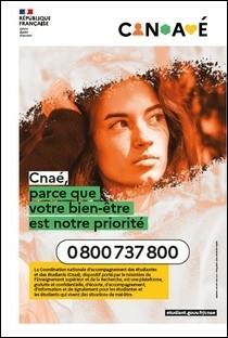 Cette plateforme baptisée Cnaé (Coordination Nationale d’Accompagnement des Étudiantes et Étudiants) est le point de contact de référence pour tous les étudiants éprouvant une situation de mal-être.