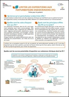 - d’une fiche destinée au praticien, faisant notamment le point sur les impacts potentiels des PE sur la santé et la réglementation en la matière ;