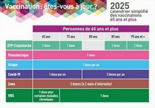- l’affichette et les cartes postales (disponibles en 2 versions : chez « la personne âgée de 65 ans et plus » et « l’ensemble de la population ») présentant le calendrier vaccinal simplifié en vigueur,