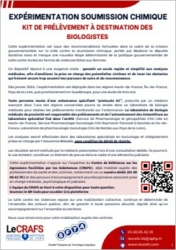 L’expérimentation relative à la prise en charge par l’Assurance Maladie, sur prescription médicale, des examens biologiques permettant de détecter un état de soumission chimique sans dépôt de plainte préalable est en cours dans les Hauts-de-France, les Pays de la Loire et en Île-de-France. Les biologistes médicaux exerçant dans ces territoires sont fortement invités à y participer. Pour les y aider, des supports d’accompagnement sont disponibles sur le site du Cespharm.